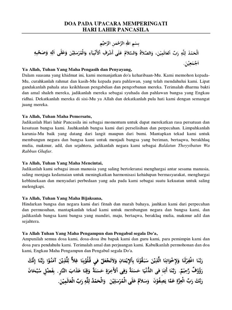Doa Upacara Hari Lahir Pancasila 2019 Pdf